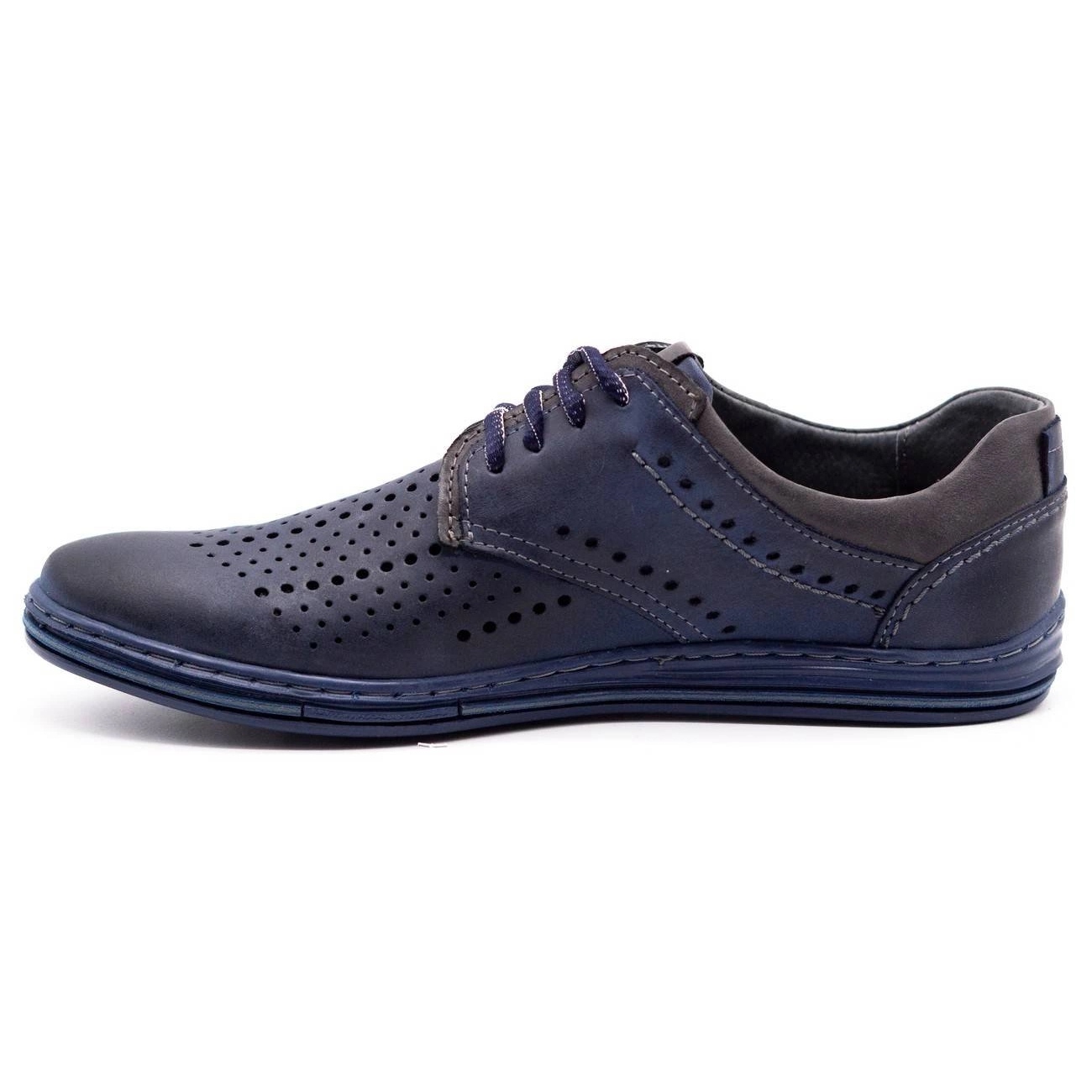 Polbut Polbut Pánské kožené boty 402 letní tmavě modré se šedou barvou námořnická modrá