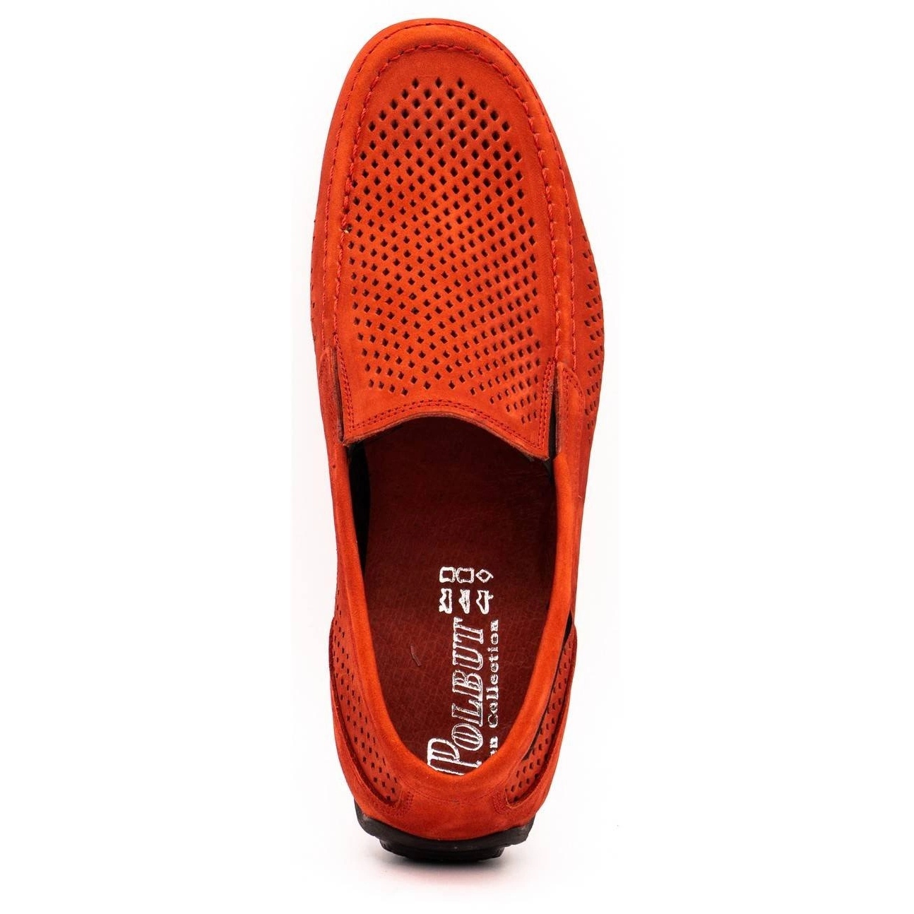 Pánské kožené mokasíny Polbut 2105P v živé červené barvě nesmí chybět v šatníku každého módního muže, zvláště v teplejších dnech. Tyto elegantní boty se perfektně hodí k lehčím stylům, ideální pro každodenní nošení, jak k plátěným kalhotám, tak k šortkám.