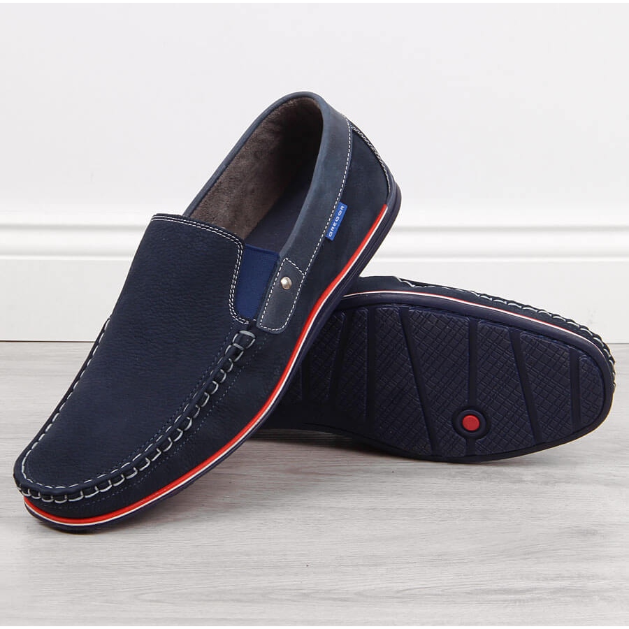 Gregor Pánské kožené mokasíny slip on tmavě modré Gregor námořnická modrá