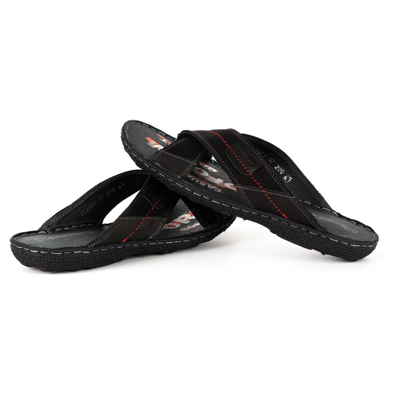 Jedinečný produkt pro muže, kteří si cení klasického stylu a pohodlí - Pánské kožené žabky Kampol 200/3 černý nubuk. Jedná se o elegantní a pohodlnou obuv vytvořenou s důrazem na každý detail, která zapadá do stálých trendů pánské módy.