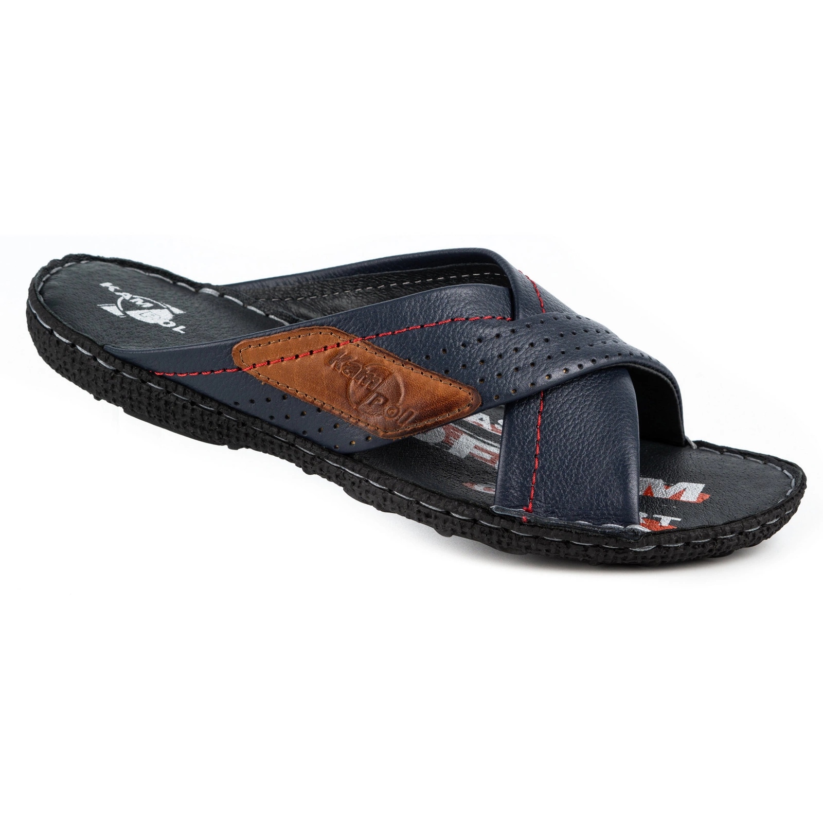 Kampol Kampol Pánské kožené pantofle 216KAM tmavě modrá modrý