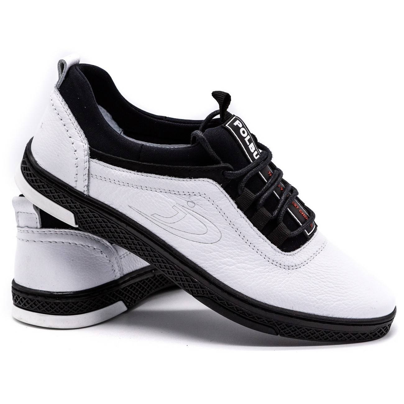 Polbut Polbut Pánské ležérní kožené boty K24, bílé s černou podrážkou bílý