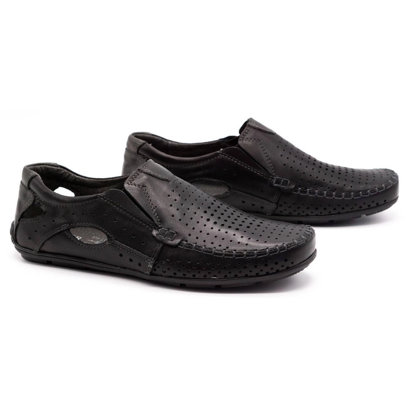 Olivier Pánské mokasíny 901 pro letní černou tvář černý