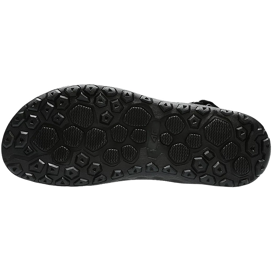 Pohodlné, lehké pánské sandály 4F určené pro léto - ideální pro pláž, pro procházku a během rekreačních outdoorových aktivit. Otevřená konstrukce zajišťuje vynikající tok vzduchu a trojitý suchý zip usnadňuje rychlé vkládání a rychlé zapadá. Vložka z měkké pěny EVA zlepšuje odpružení, zatímco odolná podešev s čirým běhounem zaručuje dobrou přilnavost.