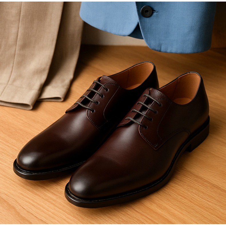 Derby boty jsou boty s otevřeným šněrováním, o něco méně formální než oxfordky, ale přesto zcela vhodné na svatbu. Hodí se především na rustikální svatby, zahradní party nebo letní oslavy. Hladké derby v tmavě hnědé nebo vínové barvě je výbornou volbou k béžovým, olivovým nebo modrým oblekům. Obyčejné derby (bez brokátu) je formálnější než modely se zdobením. To je skvělá volba pro hosty, kteří si cení pohodlí – derby boty jsou obvykle pohodlnější při delším nošení.