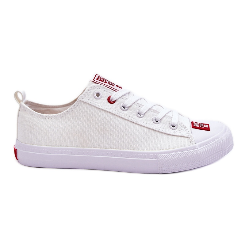 Univerzální pánské tenisky polské značky Big Star, vyrobené z odolného textilního materiálu. Jednoduchý, nadčasový design v čistě bílé s gumovým nosem a diskrétním znakem vpředu a model způsobuje, že model funguje skvěle každý den - pro džíny, chinos nebo letní šortky.