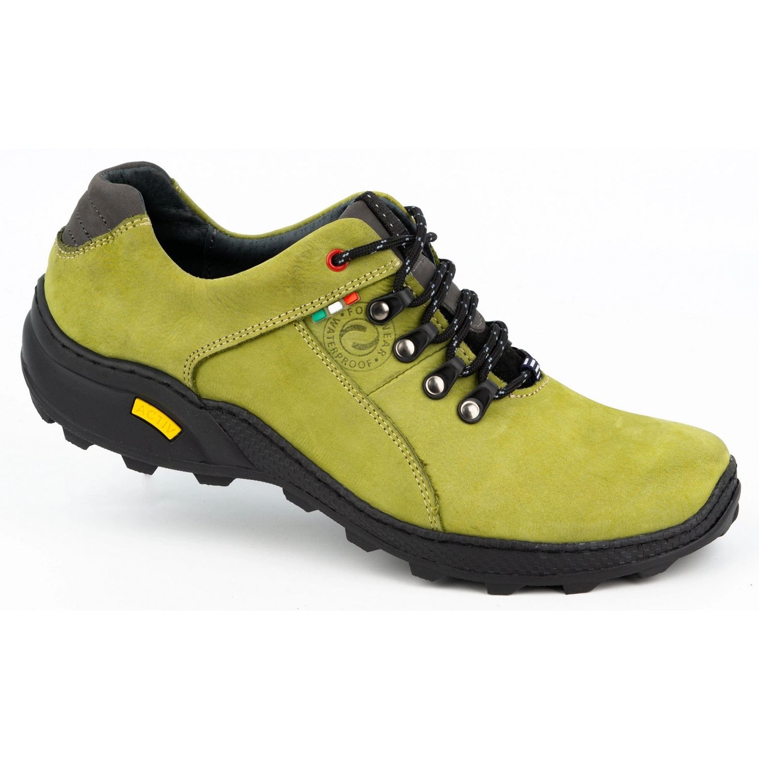 Olivier 296GT je kombinace funkčnosti a moderního stylu. Vyrobeno z přírodní kůže, v atraktivní zelené barvě, budou fungovat jak během turistiky, tak při každodenním používání. Pevné šití v kombinaci s odolností proti lepení záruk a syntetická podešev s vysokou kvalitou poskytuje určitou adhezi na různých površích.
