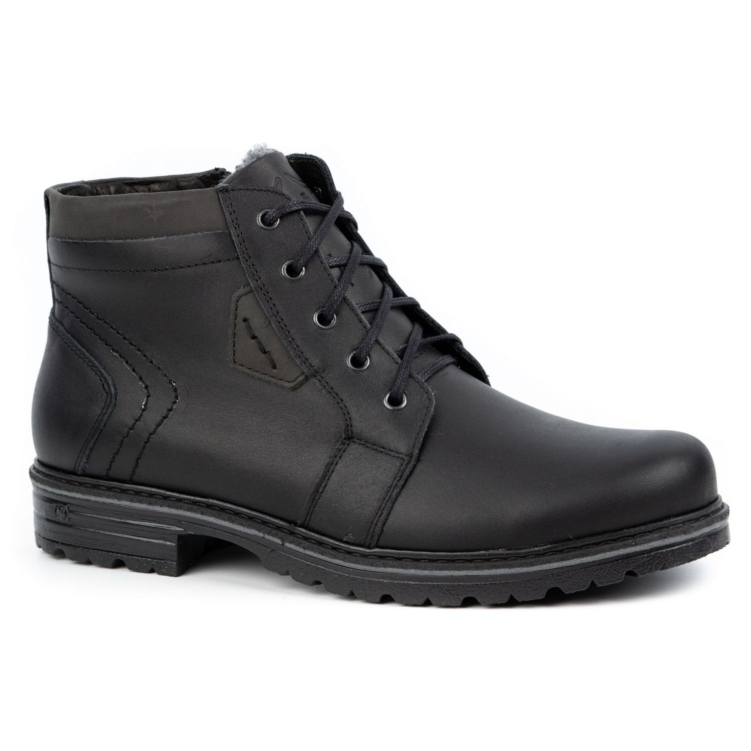Polbut Polbut Pánské zimní kožené boty J34S Černá s šedou