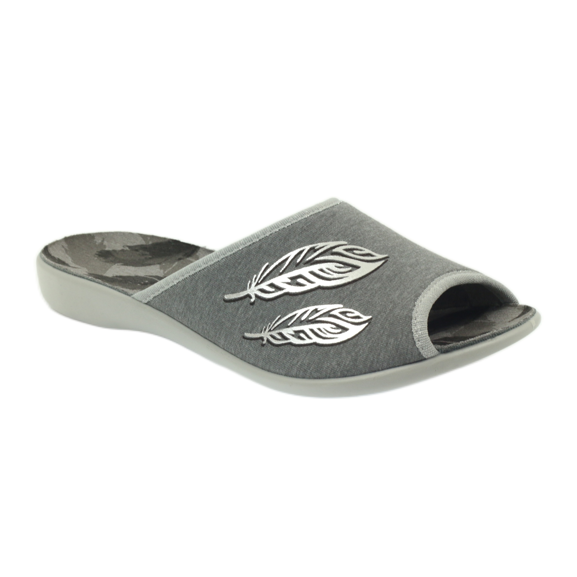 Objevte pohodlí a styl s dámskými pantoflemi Befado 254D096 v elegantní šedé barvě s jemnými stříbrnými listy. Tyto jedinečné boty se skvěle hodí jak na doma, tak na krátké výlety na dvůr.
