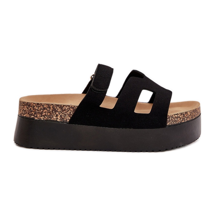 Plubky na masivní černé platformě jsou ideální volbou pro teplé dny a kombinují moderní design s pohodlím. Vyrobeno z ekologického semiše, vypadají stylově a elegantně a zároveň jsou šetrné k životnímu prostředí. Masivní platforma s výškou 5 cm nejen přidává lehkost, ale také zajišťuje stabilitu při chůzi.