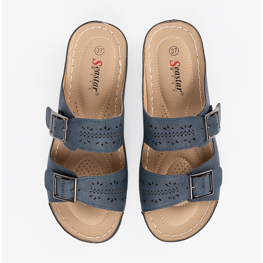 Seastar Seastar Pantofle na nízkém klínu s modrými spony