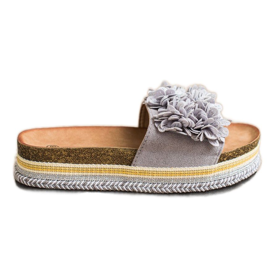 SHELOVET SHELOVET Pantofle Na Platformě S Ornamentem šedá