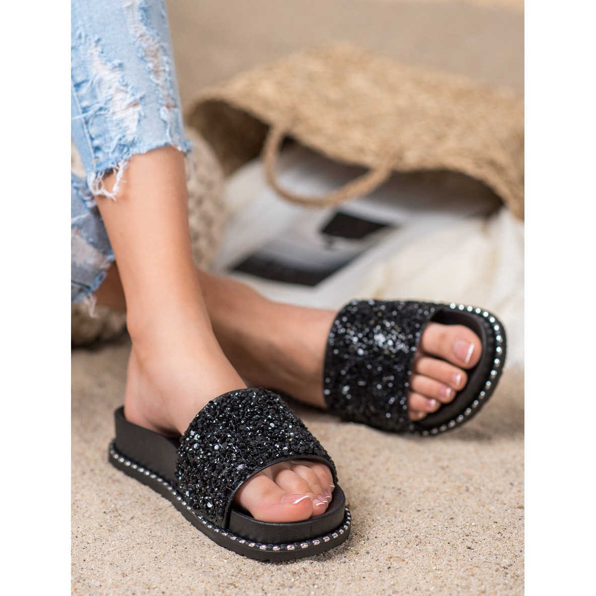 Žabky VINCEZA se vyznačují nejen estetikou, ale také pečlivým zpracováním z kvalitních materiálů. Ekokůže jim dodává elegantní vzhled a doplňkové ozdoby v podobě kamínků a cvočků zdůrazňují jejich módní charakter. Nízká platforma vysoká 3,5 cm navíc umožňuje pohodlné nošení po celý den.