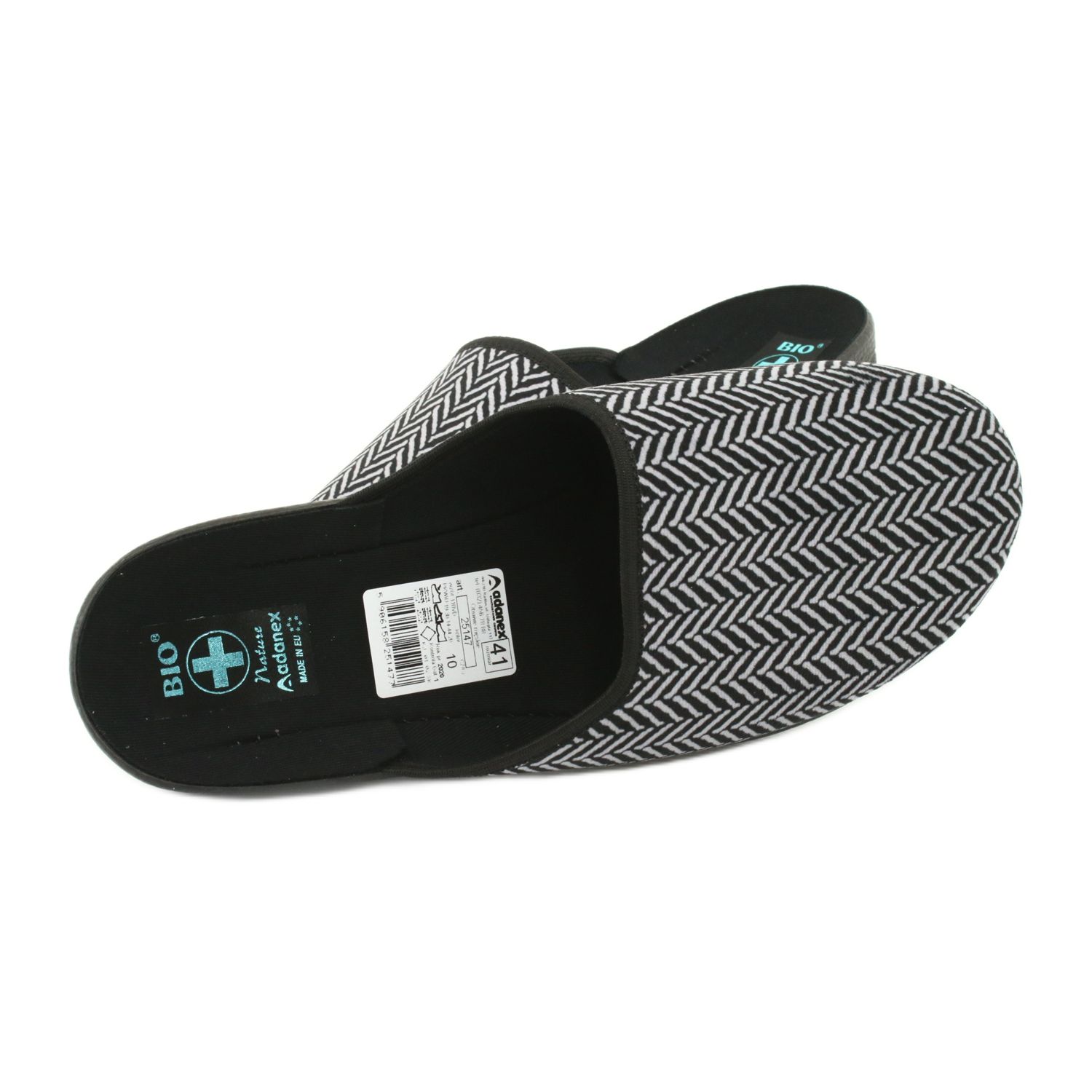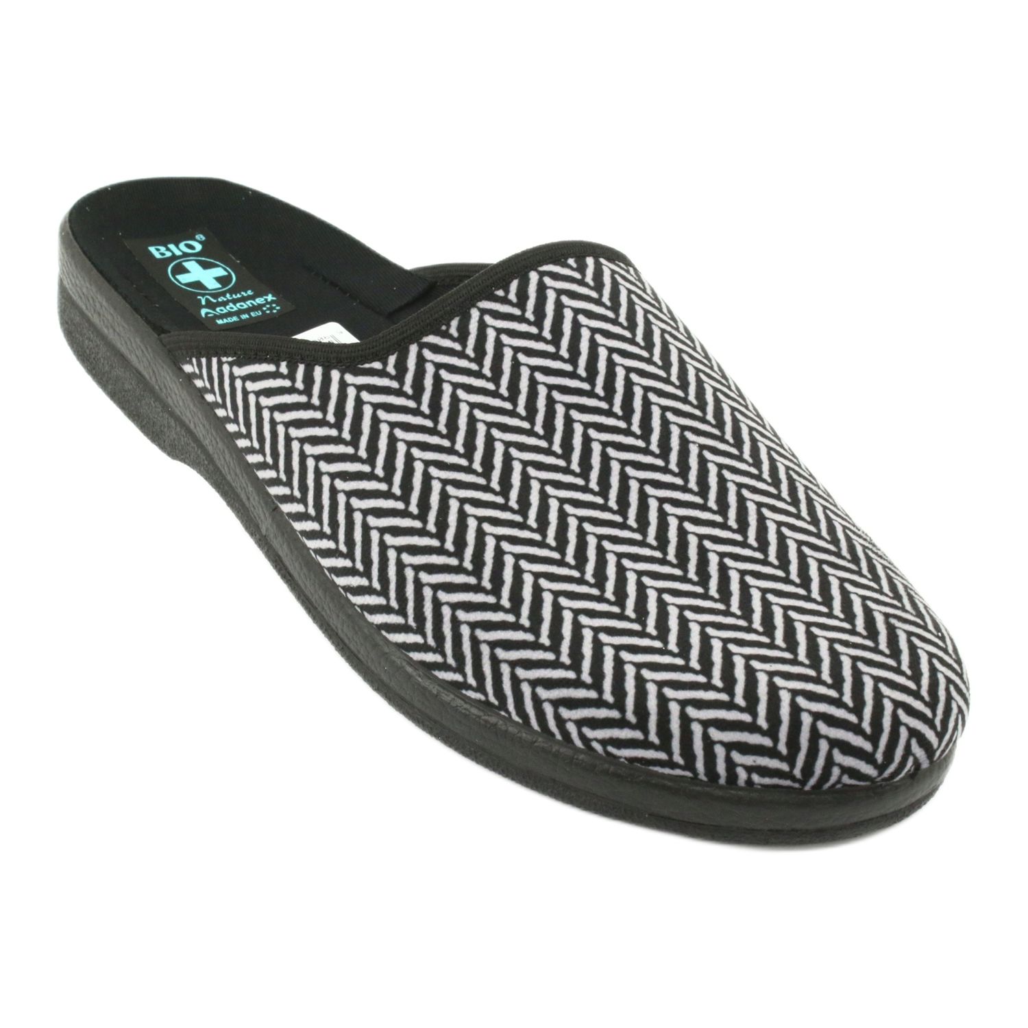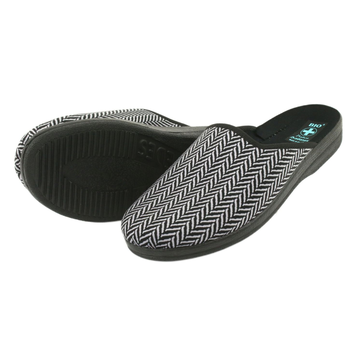 Elegantní pánské pantofle polské značky Adanex vyrobené z měkké velur s jemnou rybí kostí v odstínech černé a šedé. Profilovaná, silnější podrážka pěny PU zajišťuje lehkost a odpružení, díky kterému je procházka po domě pohodlnější a méně zatěžující klouby. Vložená struktura usnadňuje rychlý předpoklad a prodyšné materiály se starají o tepelné pohodlí nohou.