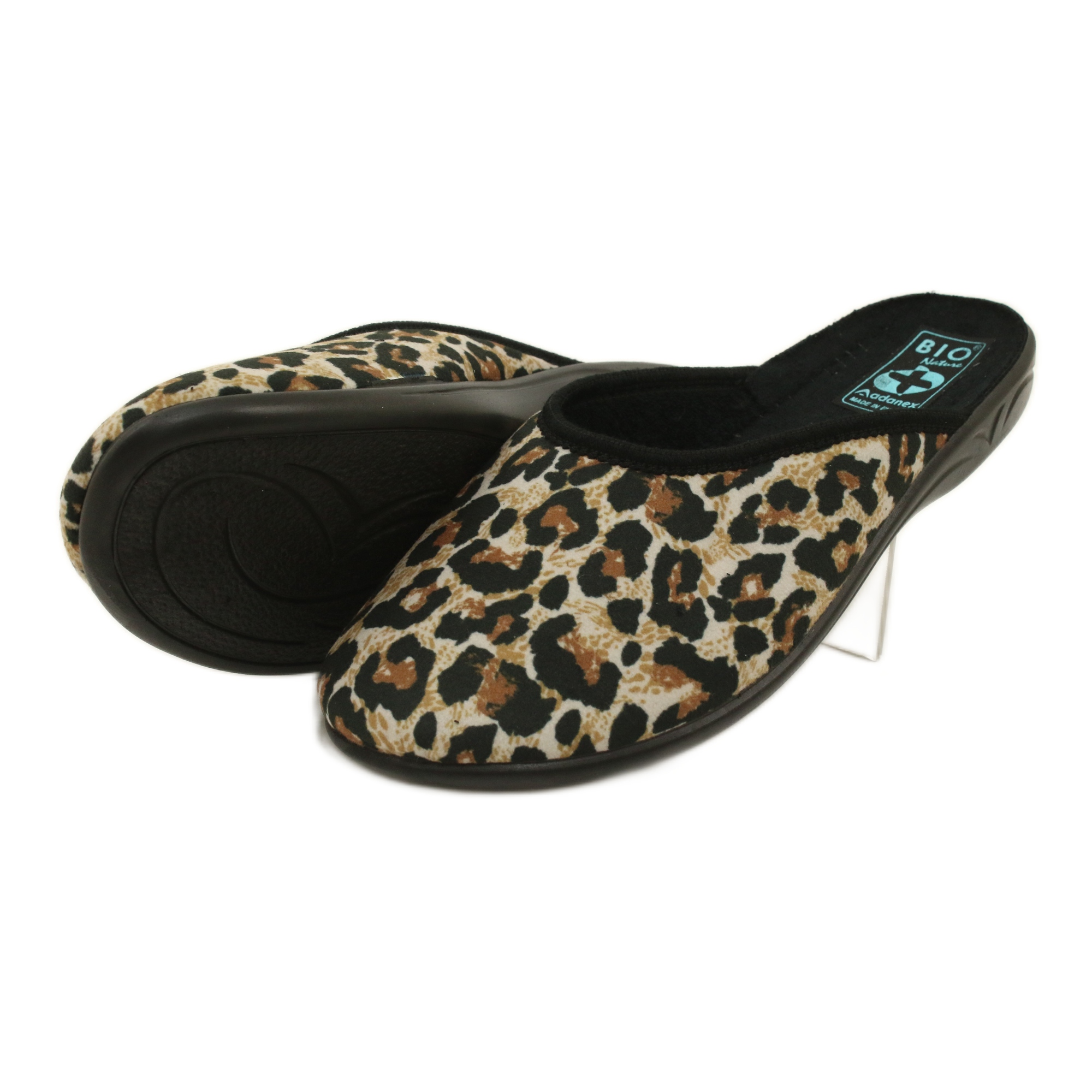 Stylové a pohodlné pantofle Adanex s módním leopardím potiskem - ideální na domácí nošení. Vyrobeny z měkké, pružné látky, podšité bavlněným froté, poskytují pohodlí a příjemný pocit pro nohy. Velmi flexibilní PU podrážka zaručuje dobré odpružení a odolnost a nazouvací design usnadňuje rychlé nazouvání.