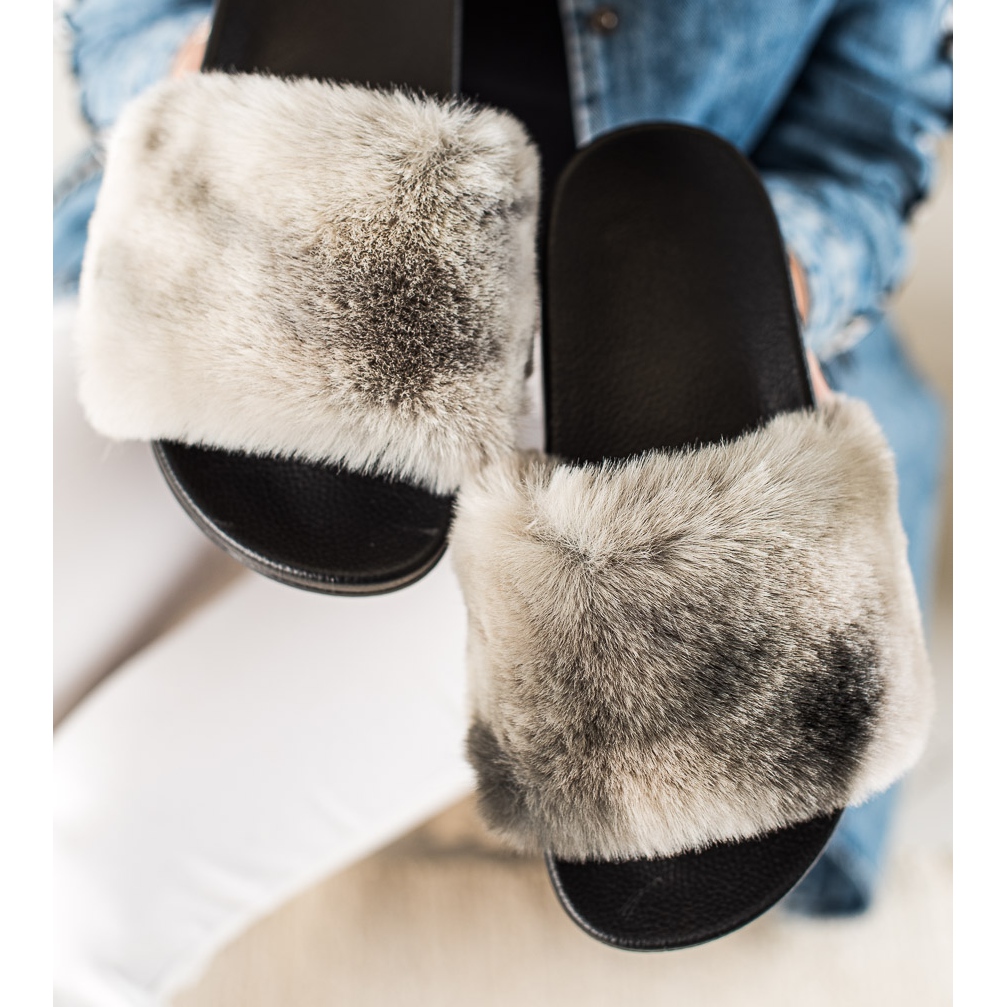 TRENDI TRENDI Pantofle s kožešinou šedá