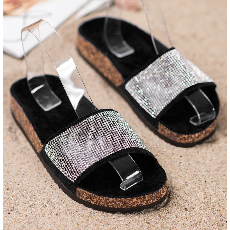 Bona Bona Pantofle s krychlovým zirkonem černá