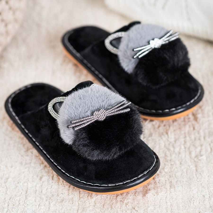 Bona Bona Pantofle s krychlovým zirkonem černá šedá