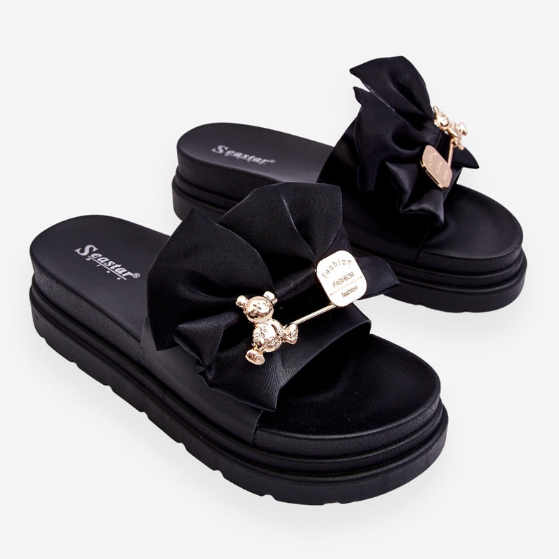 PE1 Pantofle S Mašlí A Dekorativním Medvídkem černá Suzy černý