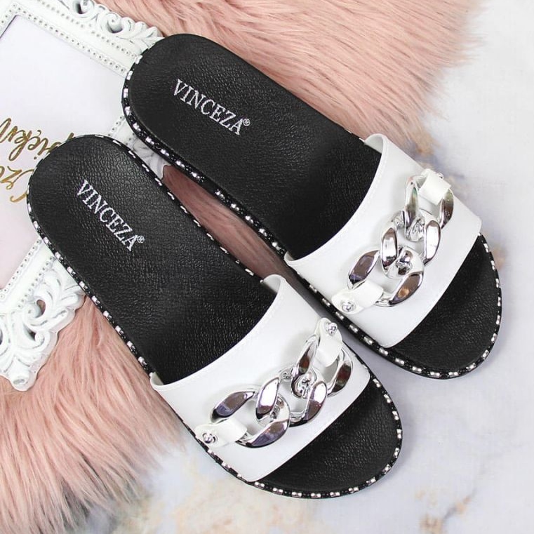 Podrobnosti: Pantofle s řetízkem Vinceza W JAN111B bílé bílý