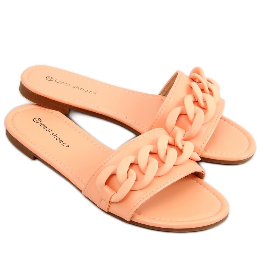 Objevte pohodlí a styl s meruňkovými řetízkovými žabkami 7857 Orange, perfektními pro každodenní použití. Tyto dámské žabky s plochou podrážkou spojují módní design a praktičnost. Vyrobeny z ekologické kůže nabízejí nejen estetický vzhled, ale také komfort nošení.