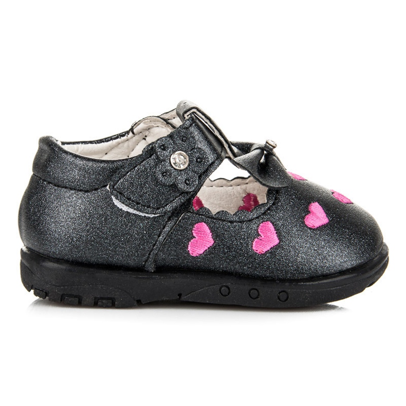 Černá srdce se srdcem jsou roztomilá a praktická balerína vytvořená pro nejmladší. Vyrobeno z ekologické kůže, ideální pro jaro/letní sezónu. Jemný luk jim dává dívčí kouzlo a upevňovací suchý zip usnadňuje oblékání a odstranění i malých dětí.