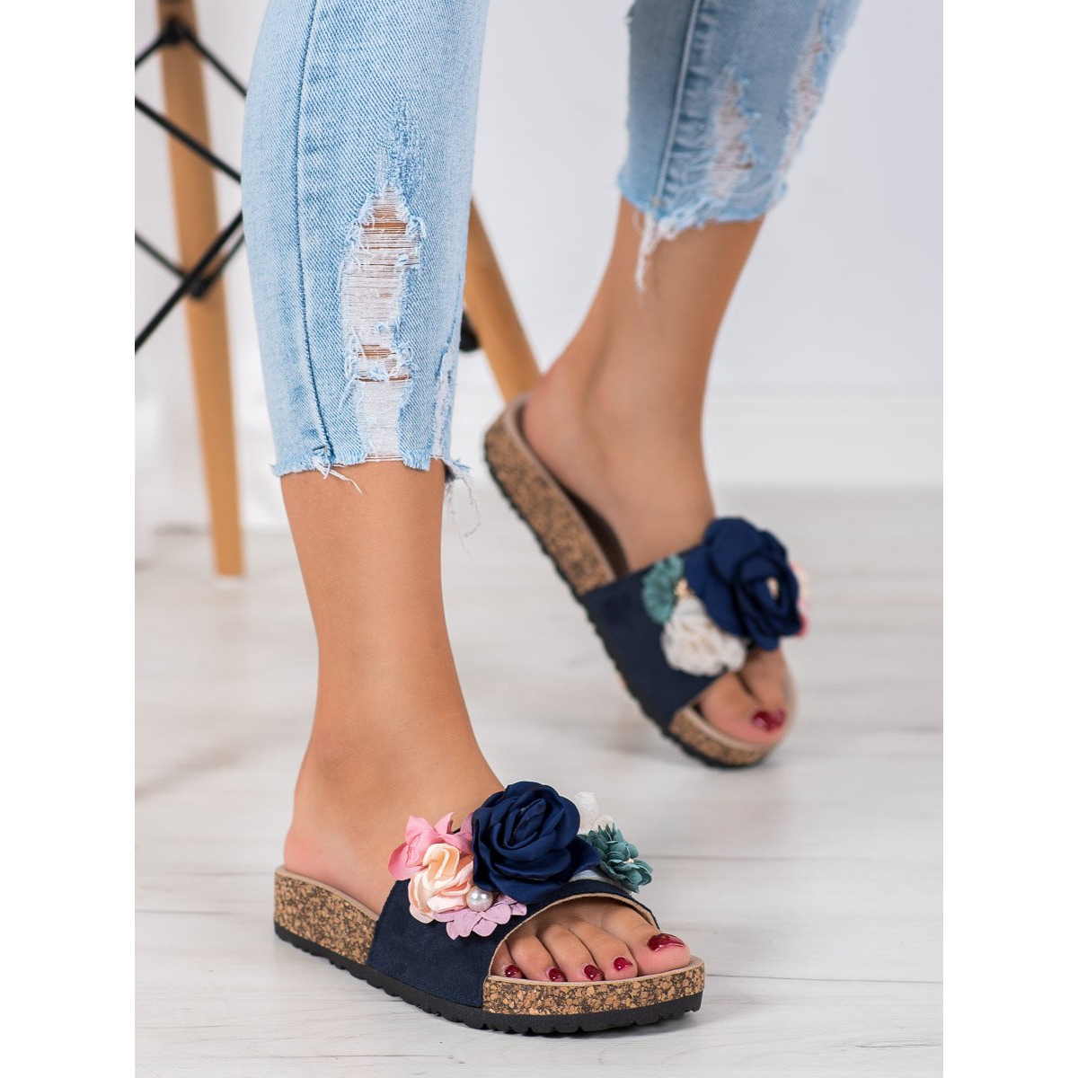 Vinceza Pantofle VINCEZA s květinami námořnická modrá modrý vícebarevný