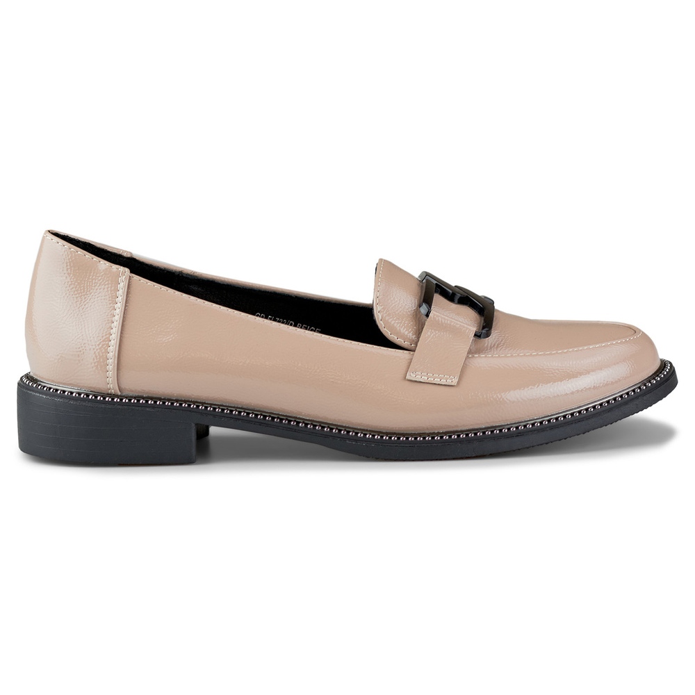 Varninged dámské boty - mokasíny s ozdobou