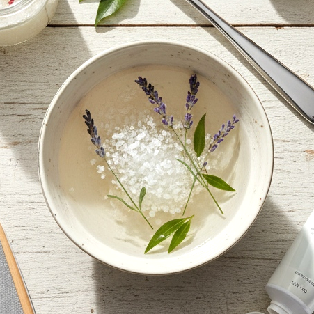Začněte teplou koupelí nohou (10-15 minut). Do vody přidejte pár lžic mořské soli nebo epsomské soli – to změkčí zrohovatělou kůži a usnadní její odstranění. Můžete přidat i pár kapek levandulového nebo tea tree oleje, které mají antibakteriální a relaxační vlastnosti.