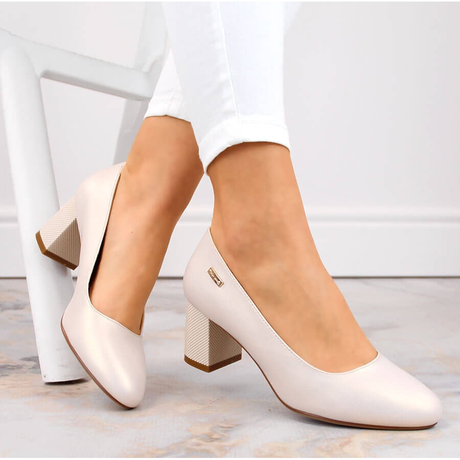Podrobnosti: Perleťové béžové lodičky na ozdobném sloupku od Sergio Leone béžový
