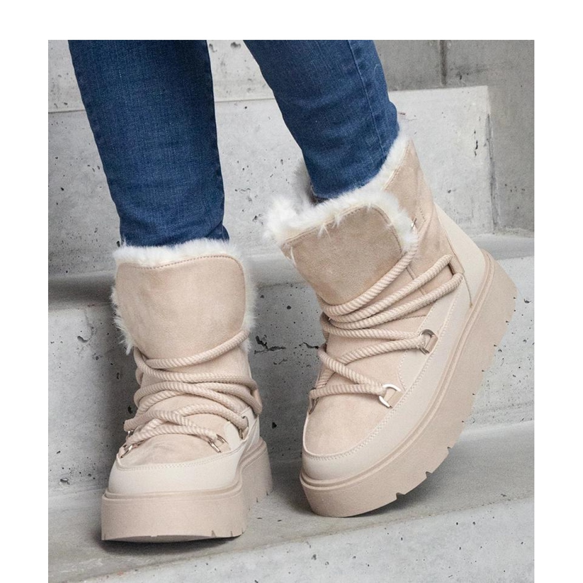 Inna marka Platformové sněhule zateplené kožíškem béžový