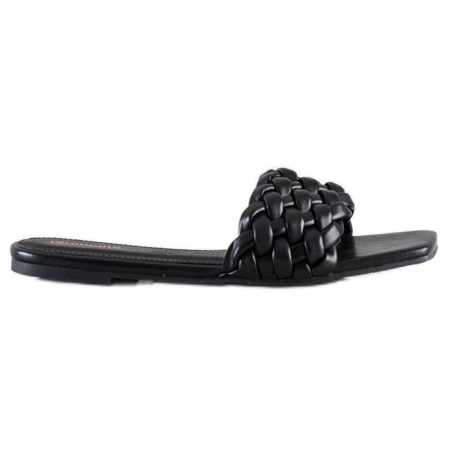 Goodin Pletené pantofle z eko kůže černý