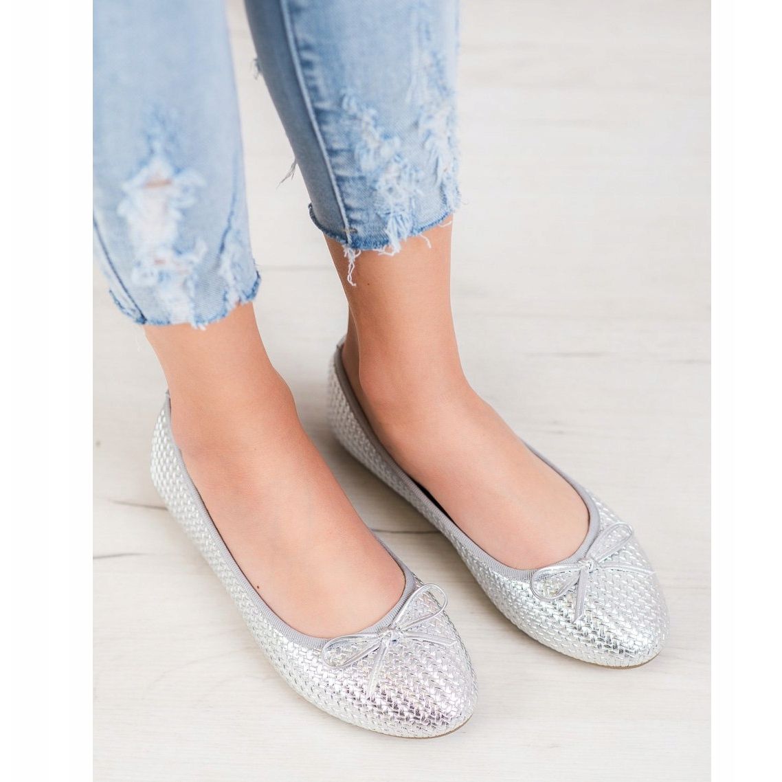 SHELOVET SHELOVET Pletené stříbrné balerínky stříbrný