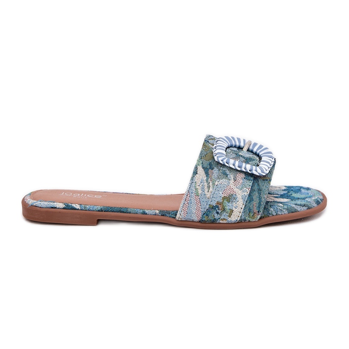 inna Inna Ploché dámské žabky s dekorativní modrou sponou modrý