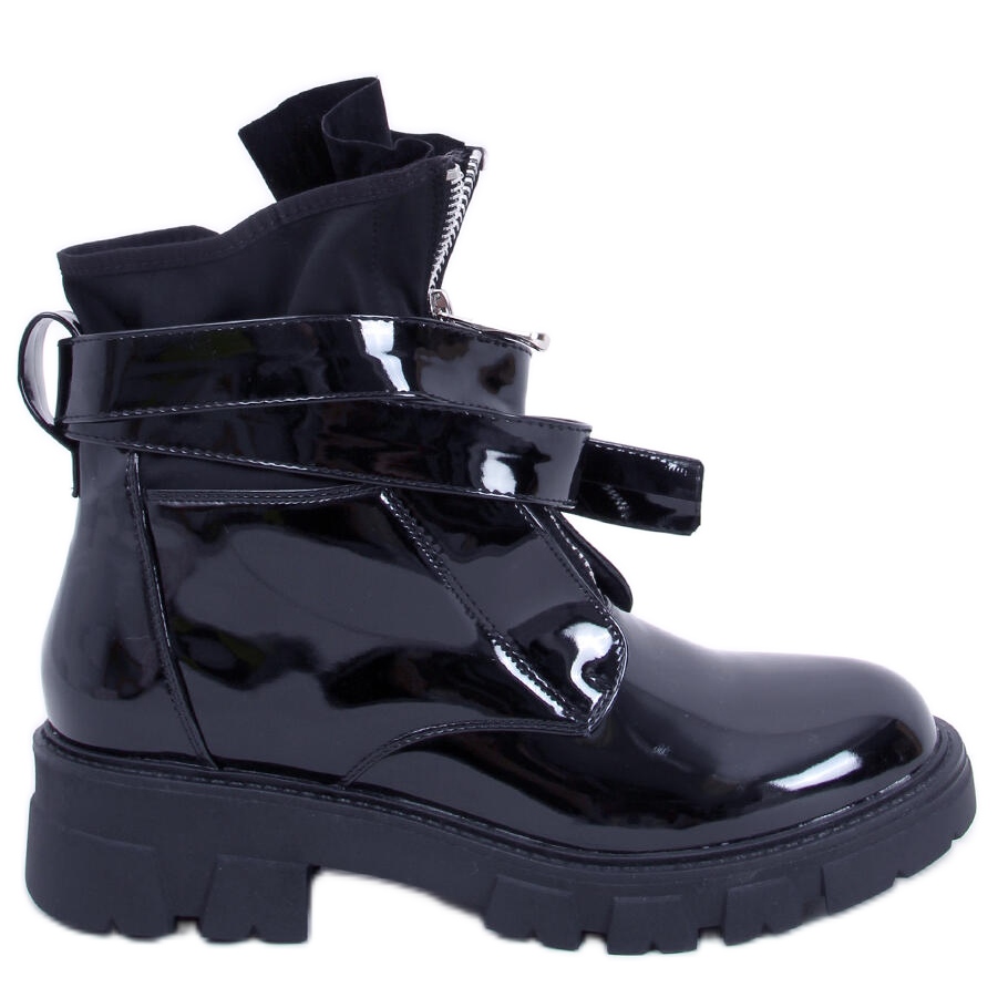 Nápadné proužky a zip vpředu jsou detaily, které přitahují pozornost a dodávají botám originalitu. Černý lakovaný povrch se perfektně hodí k různým stylům – od ležérních až po vojenské, takže budete vždy vypadat módně a stylově.