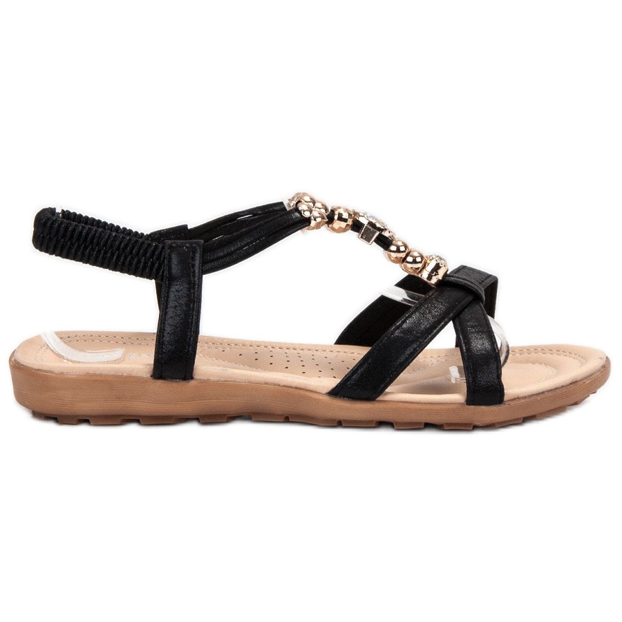 SHELOVET Ploché sandály s ozdobami černý