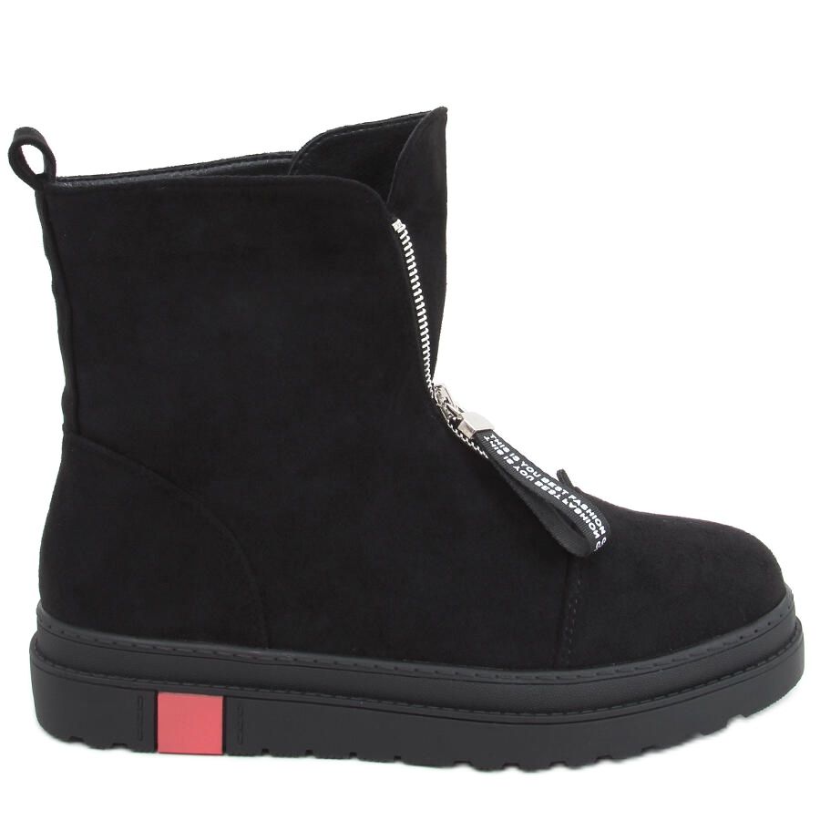 Semišové ploché boty Pitt Black jsou ideální volbou pro ženy, které ocení styl i pohodlí. Tyto černé kozačky na sportovní podrážce se vyznačují módním střihem a praktickým zapínáním na zip vpředu, díky kterému se snadno a rychle nazouvá. Vyrobeny z ekologického semiše, jsou ideální pro každodenní styling a dodávají sportovní charakter.