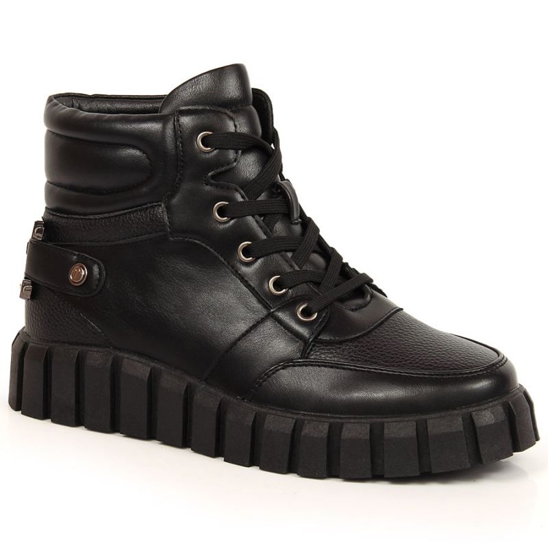 Představujeme platformu Workers s dekorací Potocki W WOL106A v černé barvě - perfektní obuv pro podzimní a zimní dny pro moderní ženy, které si cení pohodlí a stylu.