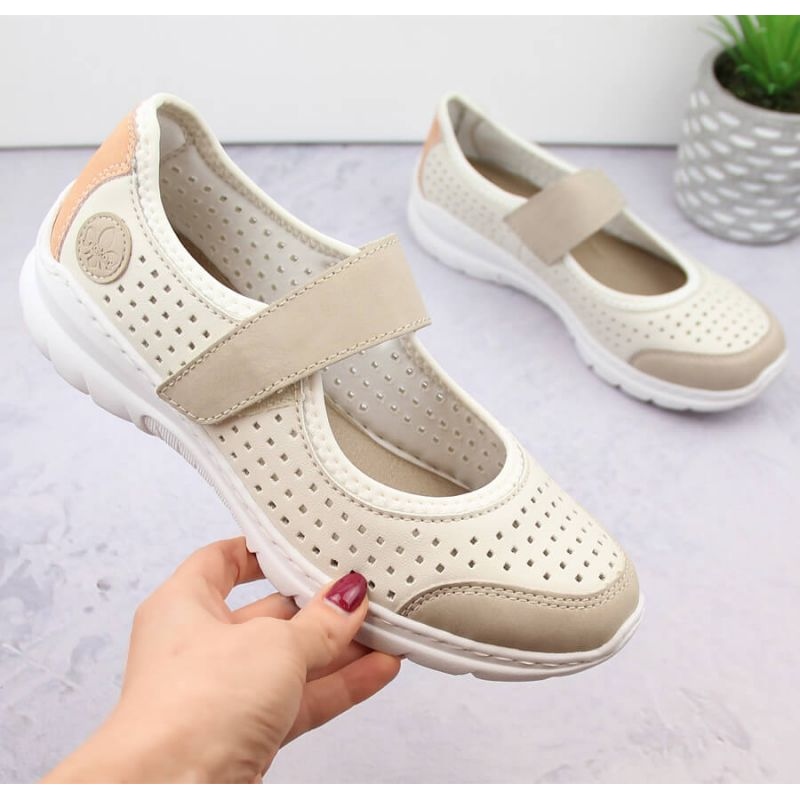 Rieker Pohodlná prolamovaná obuv Rieker W RKR575A, béžová