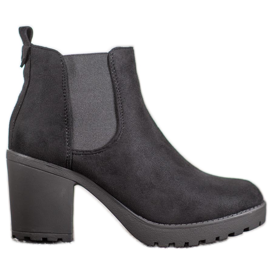 Objevte mimořádný komfort a styl s Chelsea boots na vysokém podpatku SHELOVET! Tyto elegantní černé kotníkové boty byly pečlivě vyrobeny z ekologické semišové kůže, která jim dodává nejen luxusní vzhled, ale zároveň je šetrná k životnímu prostředí. Stabilní 8 cm blokový podpatek a malá platforma vpředu zajistí pohodlí i během dlouhého dne na cestách.