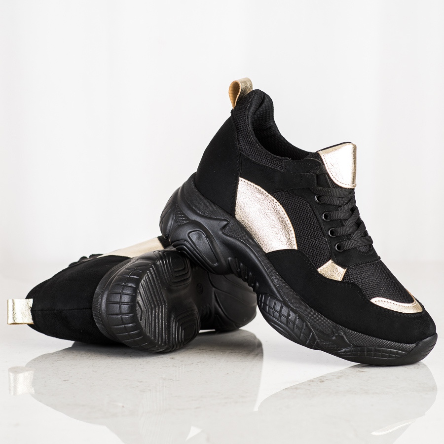 SHELOVET SHELOVET Pohodlné černé a zlaté tenisky černá zlatý