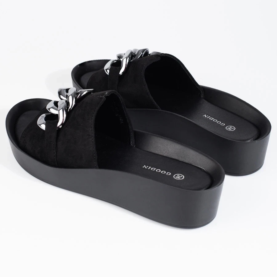 Pohodlné černé dámské pantofle Shelovet s řetízkem