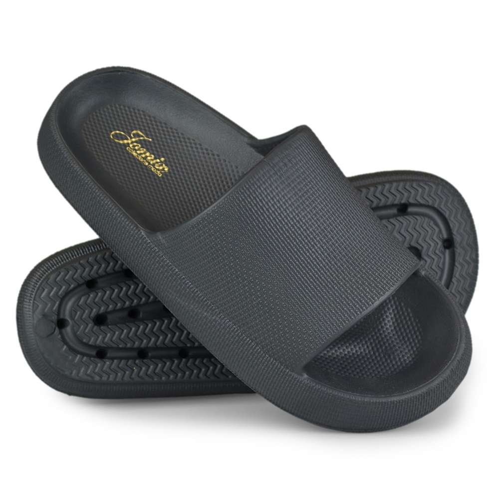 Objevte pohodlí a styl s novými dámskými pěnovými pantoflemi, které se právě objevily v nabídce KeeShoes! Tyto černé nazouvací sportovní skluzavky jsou perfektním řešením pro ženy, které oceňují pohodlí bez kompromisů ve vzhledu.