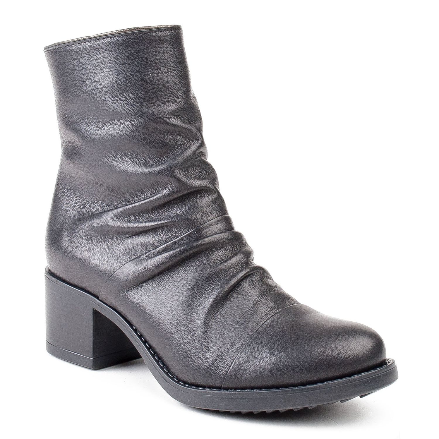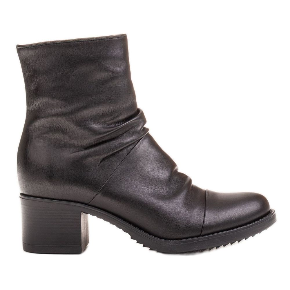 Podrobnosti: Marco Shoes Pohodlné černé kožené boty s řasením černá