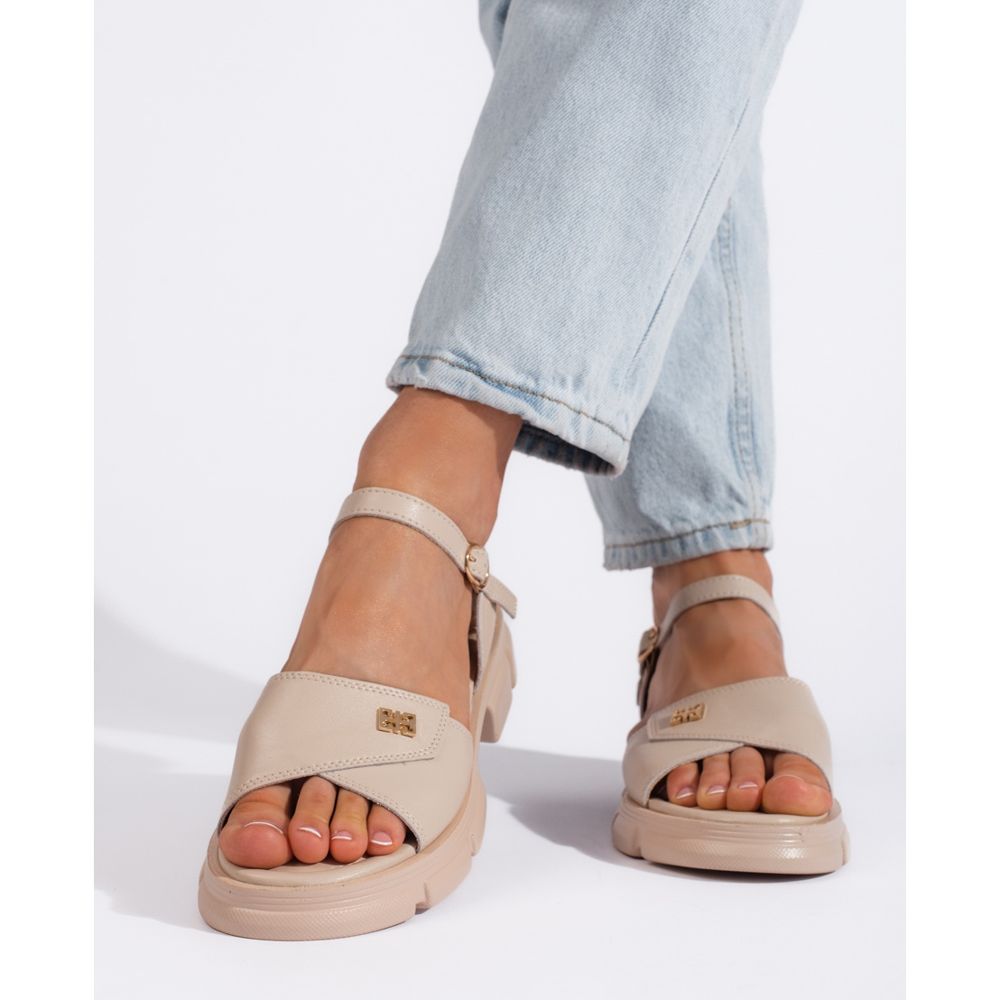 Goodin Goodin Pohodlné dámské béžové kožené sandály béžový