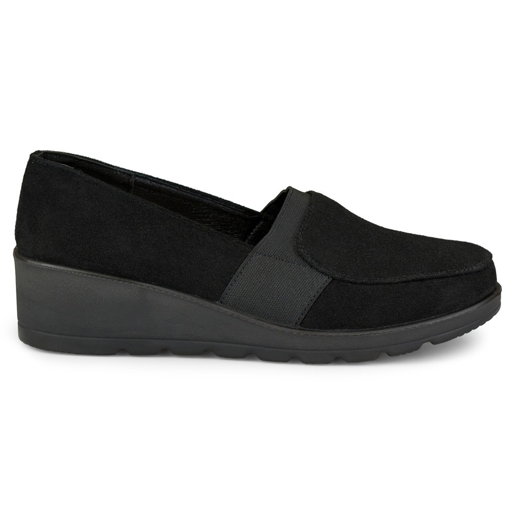 Elegantní a praktické mokasíny ze sbírky Keeshoes, ideální pro jaro a léto. Ekologický semišový svršek jim dává klasický, matný vzhled a černá barva způsobuje, že se hodí prakticky každou stylizaci - od neformálních džíny po lehké šaty.
