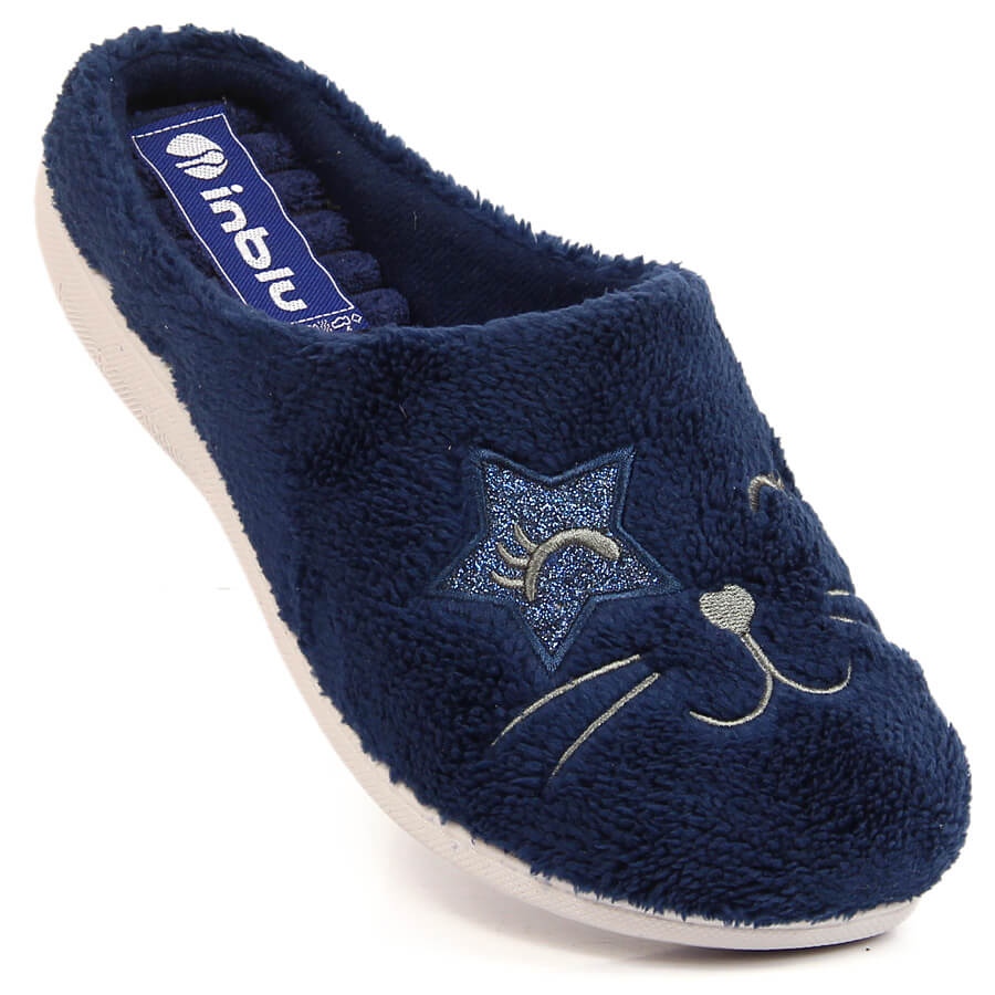 Inblu je osvědčená značka domácí obuvi - tyto pantofle kombinují měkkost tkaniny, izolace a estetické výšivky, což zajišťuje pohodlí použití a elegantní vzhled v klasické tmavové modré barvě.