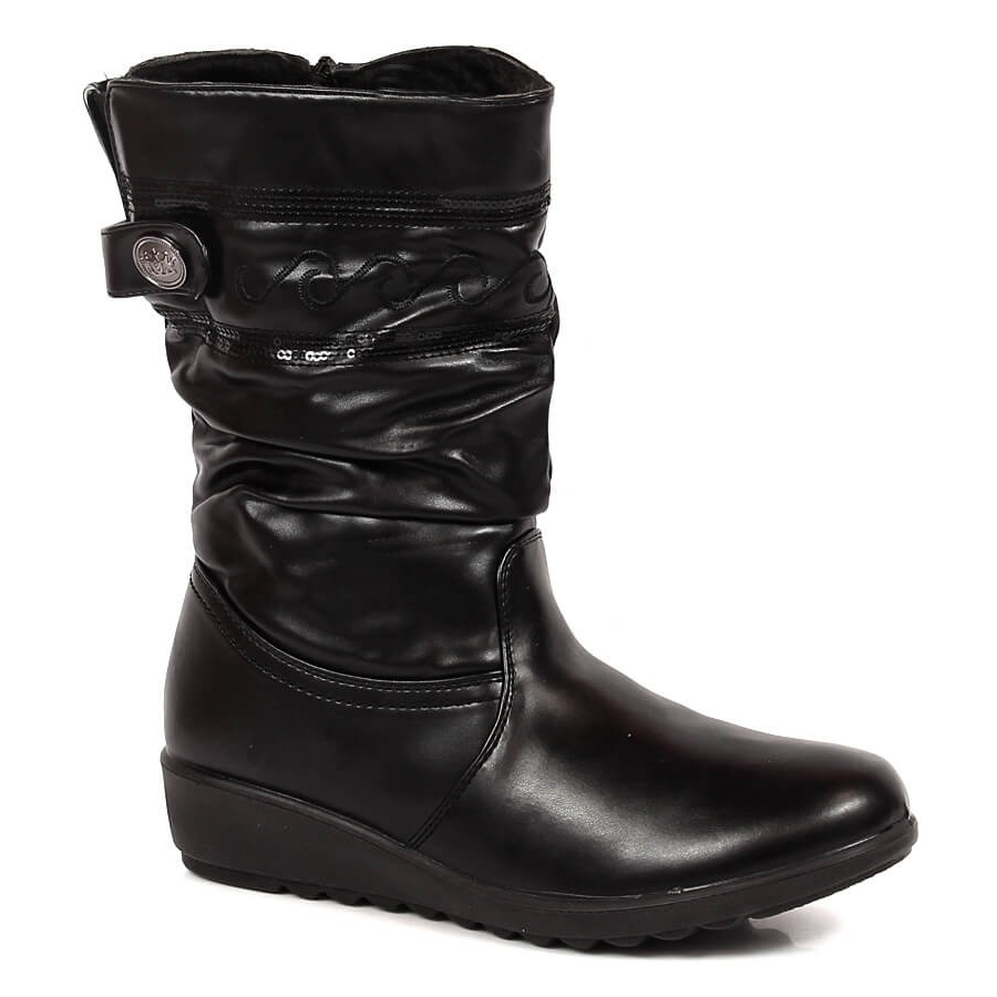 Sabatina Pohodlné dámské kozačky mačkané zateplené černé Sabatina černá