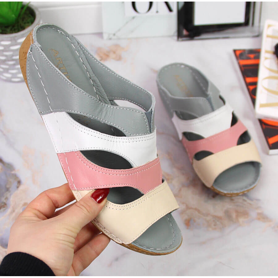 Podrobnosti: Pohodlné dámské kožené pantofle ve vícebarevném provedení Artiker šedá vícebarevný