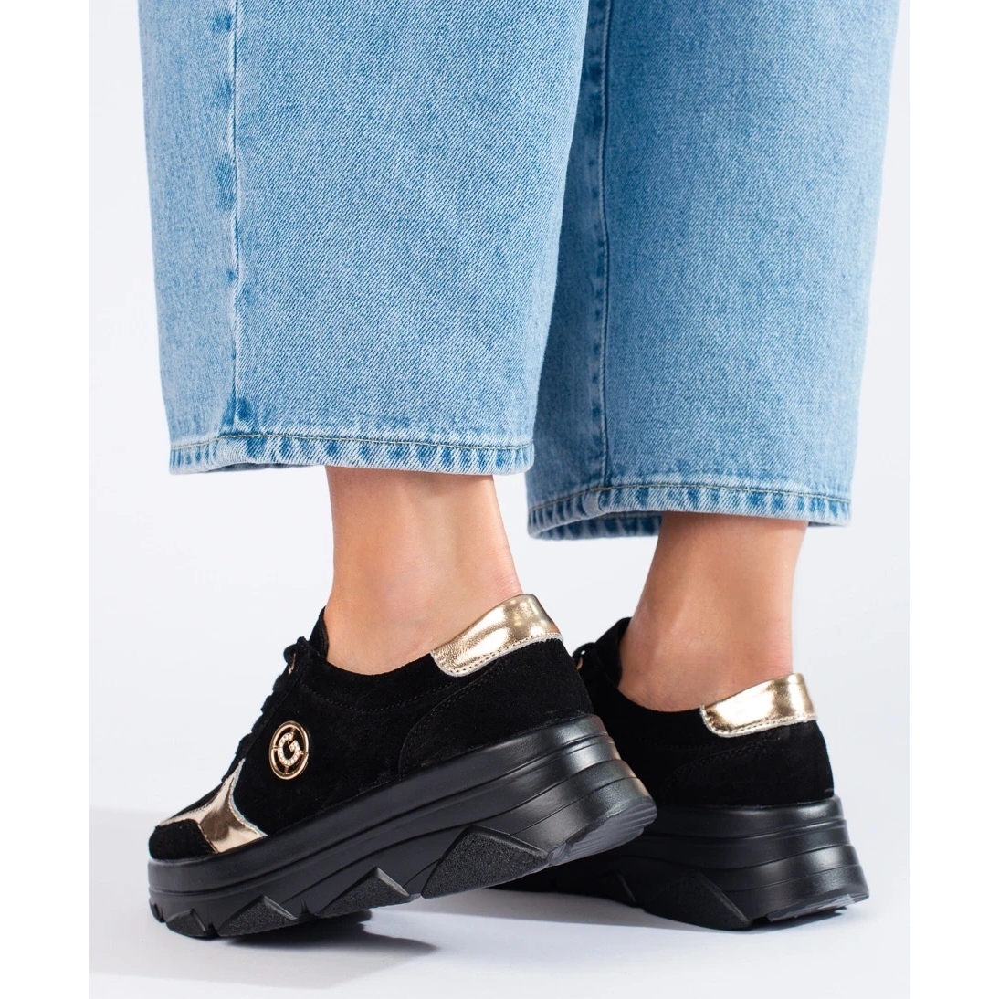 Klasické tenisky ve sportovním a fascinovaném vydání, které kombinují pohodlí s elegantním stylem. Vyrobeno z přirozené semišové kůže s měkkou postavenou patou a koženou vložkou poskytuje pohodlí po celý den. Jemná platforma 3,5 cm přidává mírnou výšku a stabilitu při zachování neformálního vzhledu.